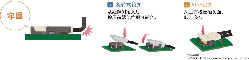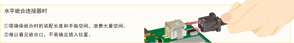 垂直嵌合不影響其他元器件,有效節(jié)省空間,提高基板設(shè)計自由度。采用從上向下的嵌合方式,易于確認(rèn)嵌合口,從而更好地確定插